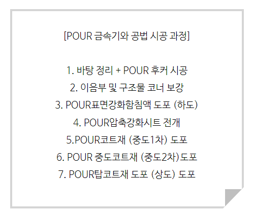 뛰어난 기술력을 인정받고 있습니다.✅POUR 솔루션은 업계에서 검증된 POUR 공법을 적용하여
