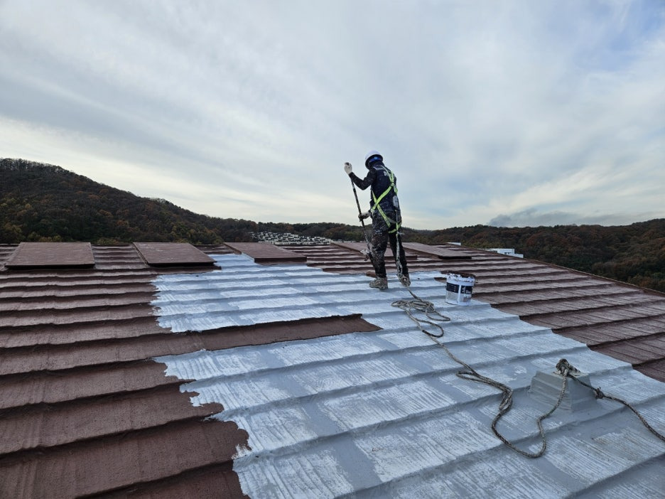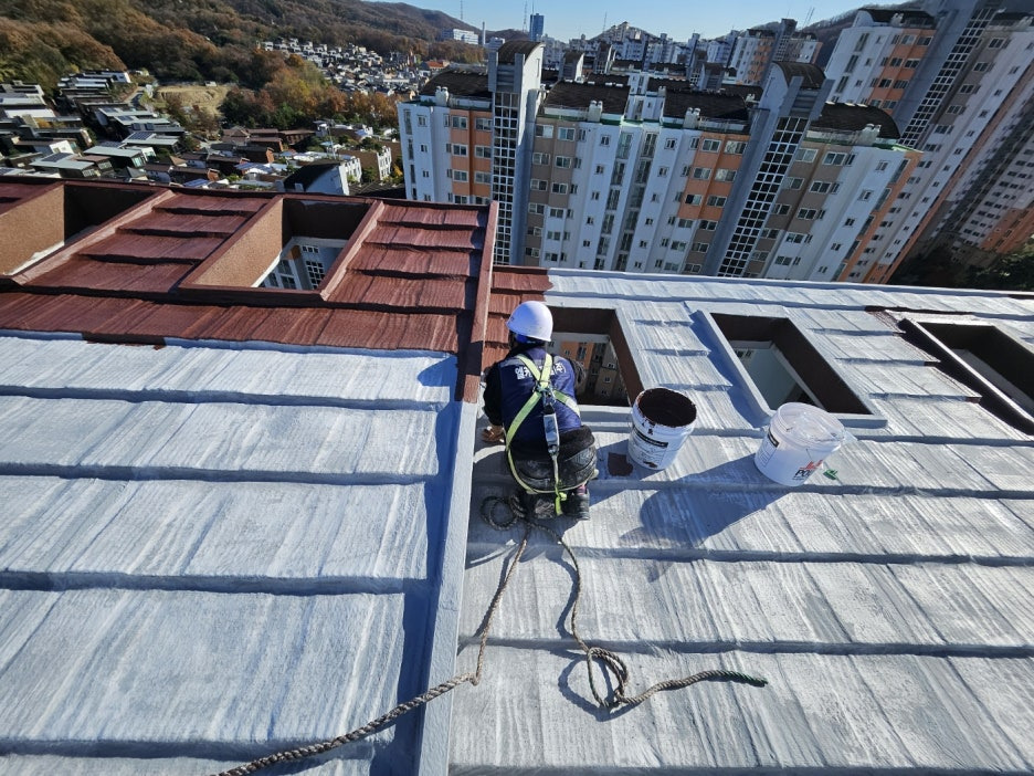 튼튼한 방수층이 형성되었습니다.컬러강판과 철판지붕의 반복되는 누수와 하자는