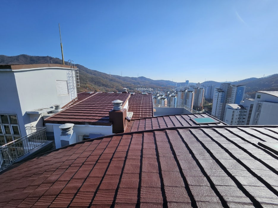 비가 올 때마다 누수가 발생되어 난감해요.. 금속기와 지붕이 하얗게 변해 아파트가 오래되어 보여요.. 금...